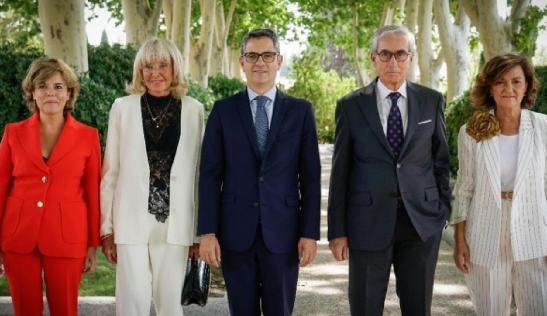 El ministro de la Presidencia en funciones, Félix Bolaños, presidió el pasado viernes el acto de presentación en La Moncloa de los nuevos retratos de María Teresa Fernández de la Vega, Ramón Jáuregui, Soraya Sáenz de Santamaría y Carmen Calvo, vicepresidentas y ministro responsables de dicha cartera en anteriores legislaturas. Bolaños destacó la labor de quienes «han conseguido hacer de España un país mejor» y elogió a Sáenz de Santamaría por haber tenido «la valentía» de haber aplicado «con rigor» el 155 «en un momento delicado para nuestra democracia».
