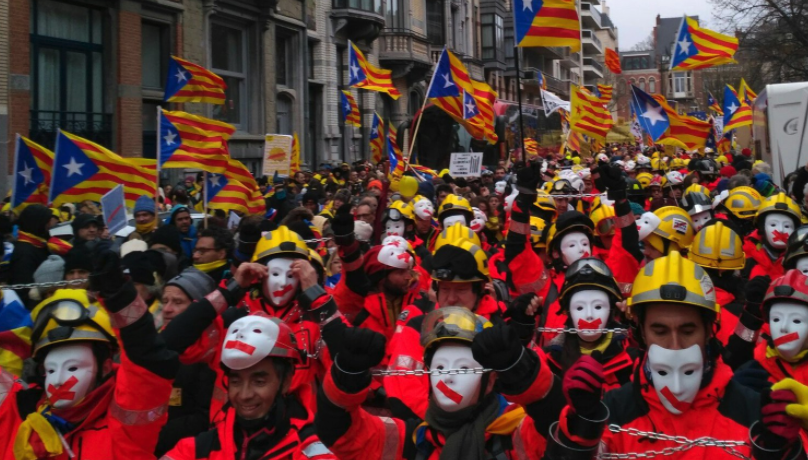 La manifestación independentista celebrada este jueves en Bruselas ha reunido a miles de personas. Entre ellos, los bomberos de Cataluña, que han decidido usar el uniforme de servicio para acudir a la concentración. La vestimenta elegida se trata de la destinada para trabajar en el servicio público y no para expresar ningún tipo de ideología política.