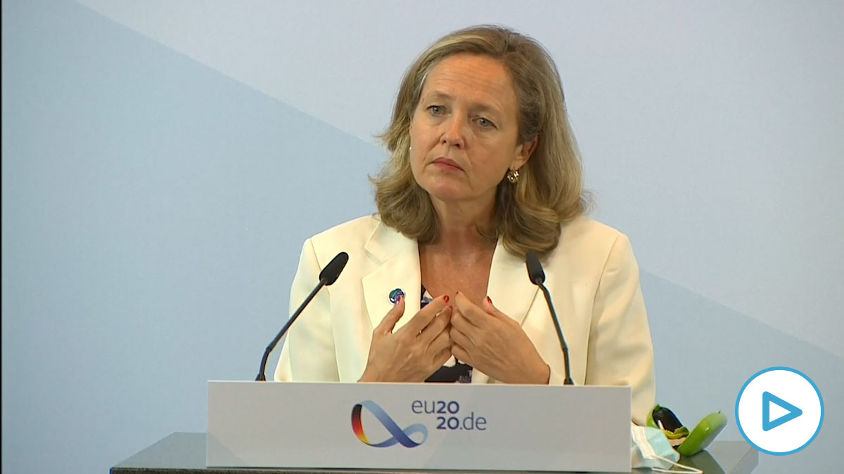 La vicepresidenta tercera del Gobierno, Nadia Calviño, ha desmentido, implícitamente, este sábado, al presidente Pedro Sánchez, que vinculó esta semana en el Senado la obtención de los fondos europeos a la aprobación previa de los Presupuestos Generales del Estado. Preguntada expresamente en Bruselas, tras la reunión del Ecofin, si Europa exigía o no tener aprobadas las cuentas para conceder sus ayudas, como afirmó el presidente para presionar a Pablo Casado, Calviño se ha limitado a responder que los presupuestos son «un instrumento eficaz para canalizar los nuevos fondos comunitarios». Las manifestaciones de Sánchez el martes en la Cámara Alta fueron también desmentidas horas después, esta vez expresamente, por Bruselas.