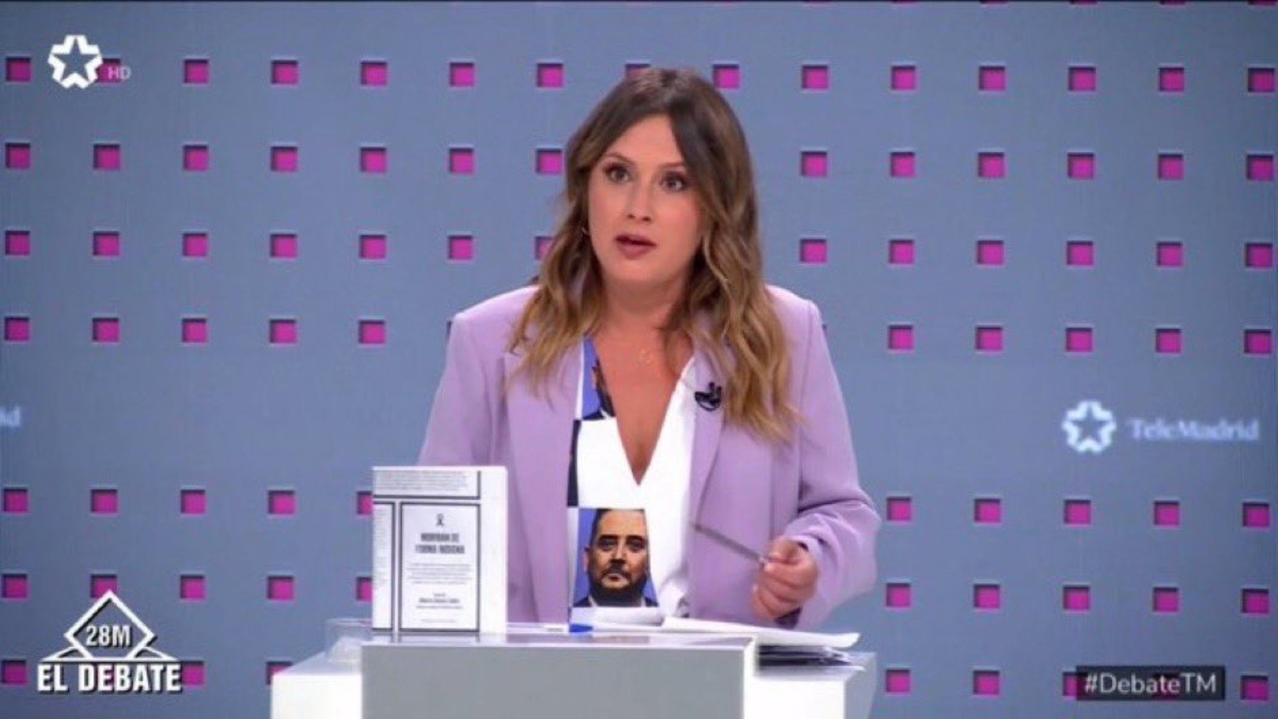 La candidata de Podemos luce una camiseta dedicada al hermano de Ayuso cuyo caso archivó la Justicia