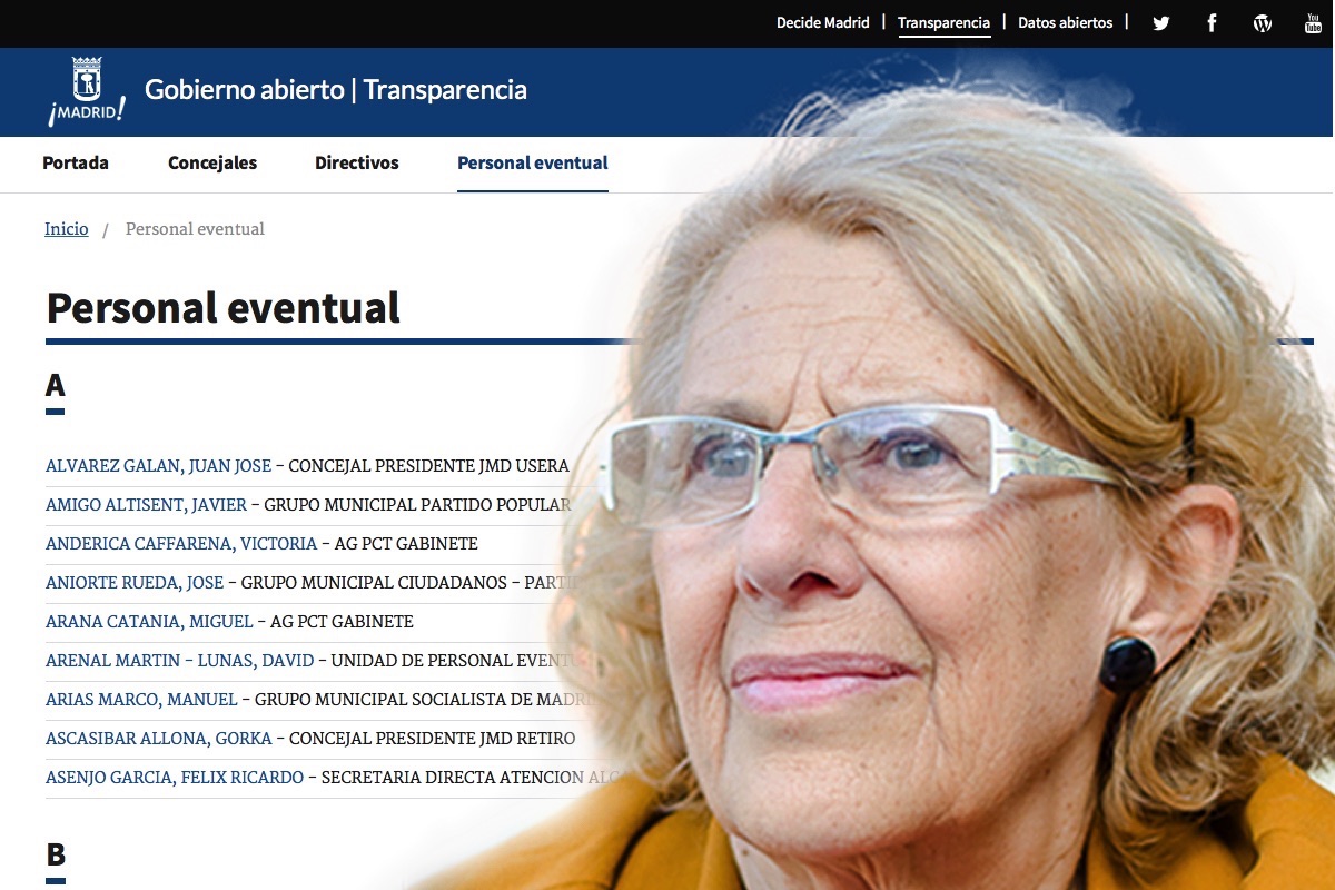 Carmena oculta personal eventual de Ahora Madrid en el portal oficial de transparencia