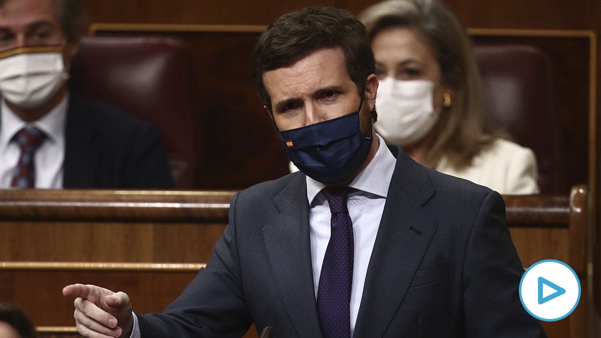 El líder del PP ha afeado a Sánchez que «mientras en España fallecían 300 personas por Covid» él «conspiraba para cambiar los gobiernos de Madrid, Murcia y Castilla y León» y que «mientras 2 millones de familias hacen las colas de hambre, se reparte ministerios con un partido que tiene a imputados por agredir a policías en sus filas».