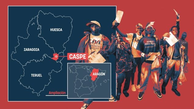 El municipio zaragozano de Caspe es una de mayores potencias hortofrutícolas en España, sobre todo, por la fruta con hueso, como el melocotón. Este tipo de explotaciones agrícolas atraen a más de 3.700 temporeros de golpe cada año a partir de la recolecta en primavera, convirtiéndose en un lugar atrayente en Aragón para las mafias de explotación laboral, debido a que gran parte de los trabajadores se encuentra en situación irregular.