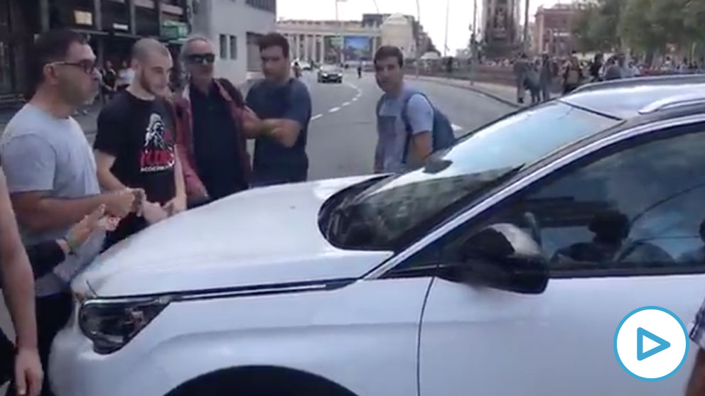 Primeras imágenes de tensión en Barcelona por la sentencia del 1-O. Minutos antes de conocerse el fallo que condena a los golpistas, un grupo de radicales de los CDR ha cortado el tráfico y ha bloqueado a una mujer que intentaba circular con su coche. Pese a las súplicas de esta para que le dejen pasar, le responden bruscamente que no le permiten circular e incluso llegan a golpear su vehículo.