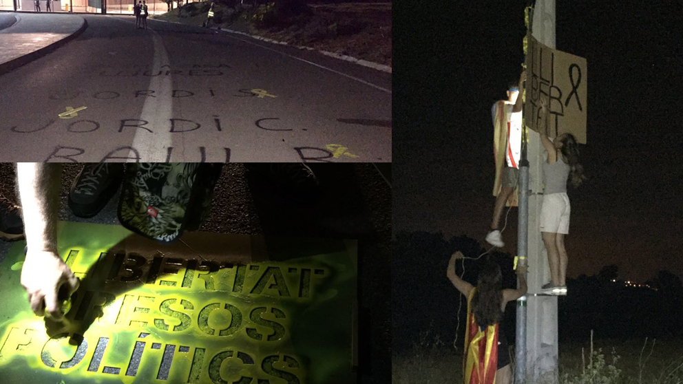 Los CDR pintan de amarillo los accesos a la prisión de Lledoners durante la madrugada