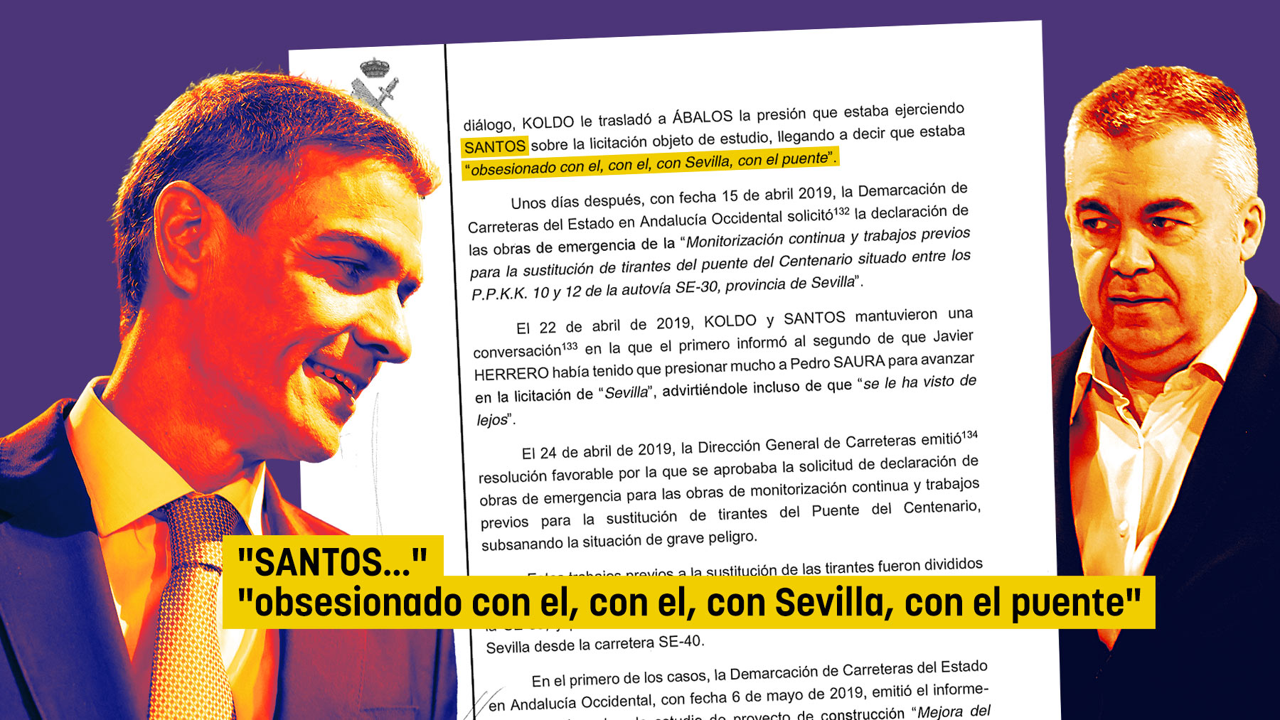Los investigadores destacan una conversación, en abril de 2019, entre Koldo y Ábalos en la que el primero le trasladaba «la presión que estaba ejerciendo Santos sobre la licitación», llegando a decir «que estaba obsesionado con Sevilla, con el puente».