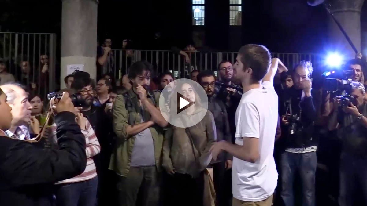 Sin ningún temor. Esa es la actitud que han mantenido delante de esta escuela a lo largo de toda la noche y la mañana mientras esperaba en la apertura del colegio electoral fraudulento. Dentro había familias y gente encargada de la organización del referéndum. Han repartido desayunos chocolate, café y bollería sin ningún miedo y en un ambiente puramente festivo. Han realizado cánticos separatistas y han hecho intervenciones y discursos ante la gente que han sido aplaudidas y coreadas sin la más mínima sensación de que hubiera algún control sobre sus actos ilegales y prohibidos por el Tribunal Constitucional.