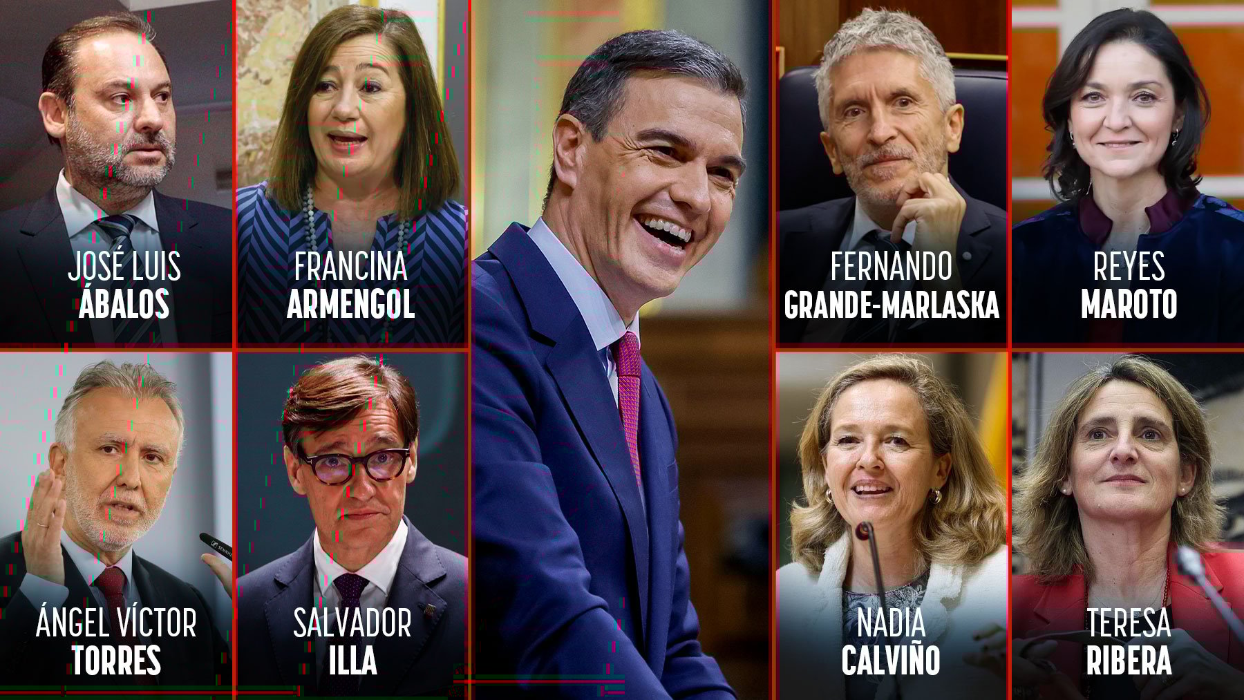 El caso Koldo se ha colado hasta la cocina del Gobierno de Pedro Sánchez. El propio presidente ya se ha visto salpicado en el último informe de la Unidad Central Operativa (UCO), en el que se destapa que la trama se refería a él en clave como «El 1». Además, afecta a ministros de la pasada y actual legislatura como Ángel Víctor Torres, Teresa Ribera, Salvador Illa, Fernando Grande-Marlaska, Nadia Calviño, Reyes Maroto y el más próximo a la trama, José Luis Ábalos. Junto a ellos, la tercera autoridad del Estado: la presidenta del Congreso, Francina Armengol. Sus nombres aparecen, en mayor o menor medida, relacionados con una trama que vendió material sanitario -en ocasiones defectuoso- por valor de 53 millones de euros, que interfirió en las negociaciones para rescatar a Air Europa o que incitó la visita fallida a España de la vicepresidenta de Maduro, Delcy Rodríguez.