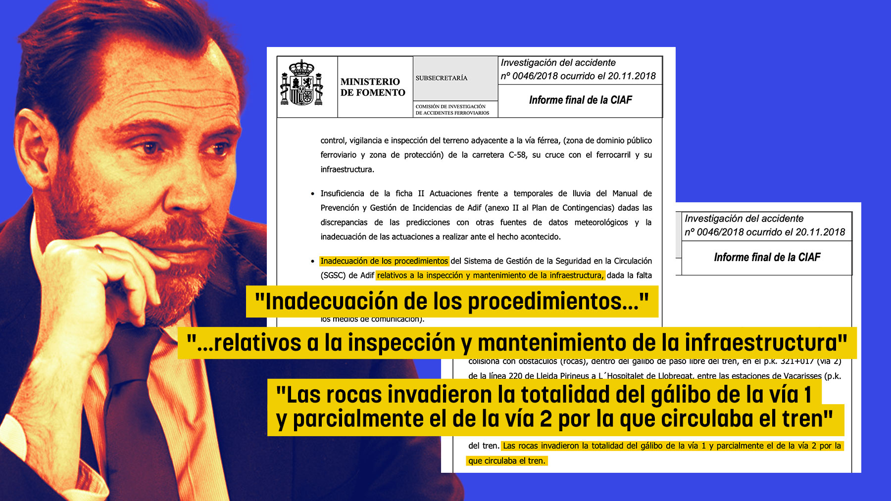 La Comisión de Investigación de Accidentes Ferroviarios (CIAF) alertó a Adif en un informe de 2020, empresa pública dependiente del Ministerio de Transportes de Óscar Puente, que existía una falta de «inspección y mantenimiento» de los muros de Rodalies. Lo hizo después de un desprendimiento de rocas sobre las vías en 2018 que provocó un accidente leve sin víctimas. Se trata de un incidente similar al que provocó un descarrilamiento fatal de Gélida.