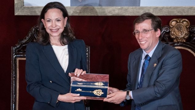 Por su parte, el alcalde de Madrid, José Luis Martínez Almeida, ha explicado que se entrega la llave de oro de la villa de Madrid a la líder venezolana como «símbolo de la admiración que siente la ciudad por su persona y por su lucha, una lucha que es la del conjunto del pueblo venezolano por conquistar la libertad que merece», una libertad que ya «se puede acariciar con la punta de los dedos».