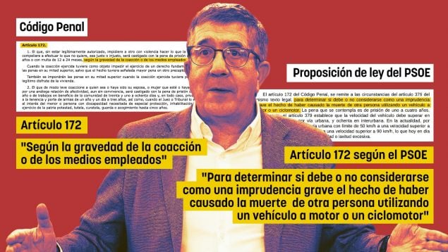 El Congreso de los Diputados ha debatido hoy una proposición de ley del PSOE con un grave error. La propuesta de los socialistas vincula el delito de coacciones con el artículo del Código Penal que tipifica las penas por sobrepasar la velocidad permitida en las carreteras. En la exposición de motivos se relacionan dos artículos que nada tienen que ver. «El artículo 172 del Código Penal se remite a las circunstancias del artículo 379 del mismo texto legal», se puede leer en el texto que han presentado en la Cámara Baja.