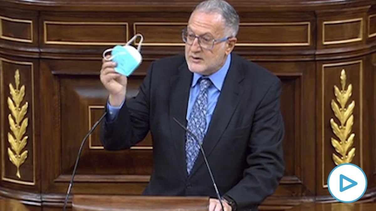«Señor ministro, mire, así se guarda la mascarilla; se mete en un sobre; se envuelve en un papel y no como usted ha hecho. ¿Qué enseñanzas podemos recibir de este Gobierno si lo primero que hace el ministro es no saber usar correctamente la mascarilla?», ha señalado Juan Luis Steegmann.