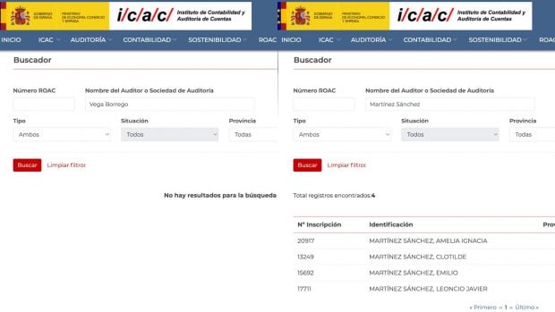 Sin embargo, ni Vega Borrego ni Martínez Sánchez aparecen en ese buscador, como puede comprobarse en las imágenes que se adjuntan.