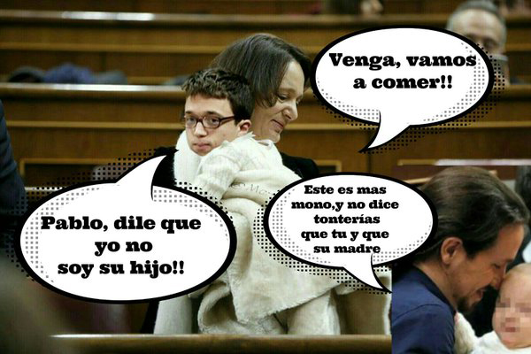 La imagen del día en la sesión de constitución del Congreso de los Diputados ha sido el de la diputada Carolina Bescansa con su bebé. El retoño ha pasado la mañana entre parlamentarios y ha generado el consiguiente ‘ruido’ en las redes sociales en forma de ‘meme’.