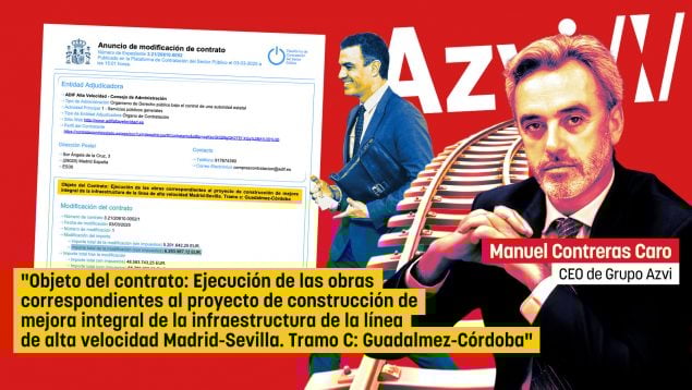 Azvi, la gran constructora sevillana presidida por Manuel Contreras Caro, ha estado en el centro de múltiples investigaciones relacionadas con la denominada trama PSOE. La empresa contrató en 2023 a Koldo García y su mujer a través de la consultora Erikapat, como asesores por 6.000 euros al mes para conseguir encargos en Latinoamérica, con una prima de éxito del 0,75% del monto total de cada proyecto hasta un máximo de 350.000 euros por operación. Además, el empresario delator de corrupción Víctor de Aldama señaló que Azvi pagaba a cambio de contratos públicos del Gobierno.