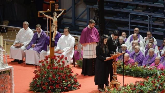 Las familias de las víctimas del accidente de tren de Adamuz (Córdoba) han expresado su compromiso para «luchar desde la serenidad» para «saber la verdad» de las causas de la tragedia que el pasado 18 de enero se cobró la vida de 45 personas. La misa funeral por los muertos del accidente se ha celebrado este jueves en el Palacio de Deportes Carolina Marín de Huelva, y hasta allí se han desplazado los Reyes, Felipe VI y Letizia, para acompañar y consolar a las familias.