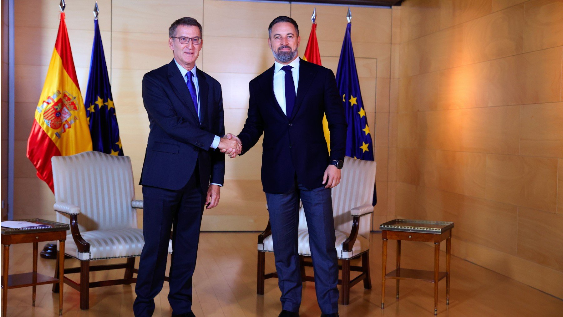Vox ya mostró su disposición a apoyar a Feijóo de cara a su investidura para intentar formar Gobierno tras las elecciones generales del 23J. El líder del PP cuenta, hasta el momento, con 172 votos favorables: los 33 diputados de la formación de Abascal, el diputado de UPN y la parlamentaria de Coalición Canaria. Feijóo estaría a cuatro votos de lograr la mayoría absoluta en el Congreso para poder ser investido presidente y desbancar a Pedro Sánchez de la Moncloa.
