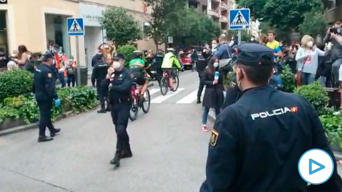 «Esta es la que se ha liado por defender a España», añade uno de los vecinos que se han echado a la calle, «fíjese cuanta Policía, hay más Policía que si estuviera aquí Otegi». Mientras pronuncia estas palabras, un helicóptero del Ministerio de Interior sobrevuela el barrio de Salamanca.