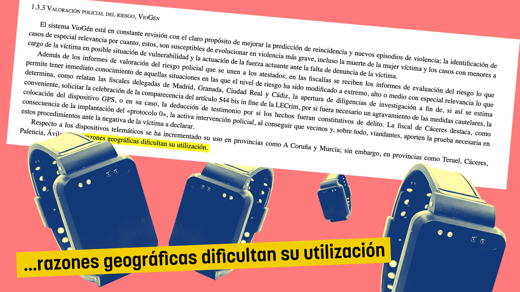La Fiscalía General del Estado advierte en sus memorias de las «dificultades» para la utilización de los dispositivos telemáticos de protección de las víctimas de violencia de género, pulseras, en algunas provincias españolas por «razones geográficas».