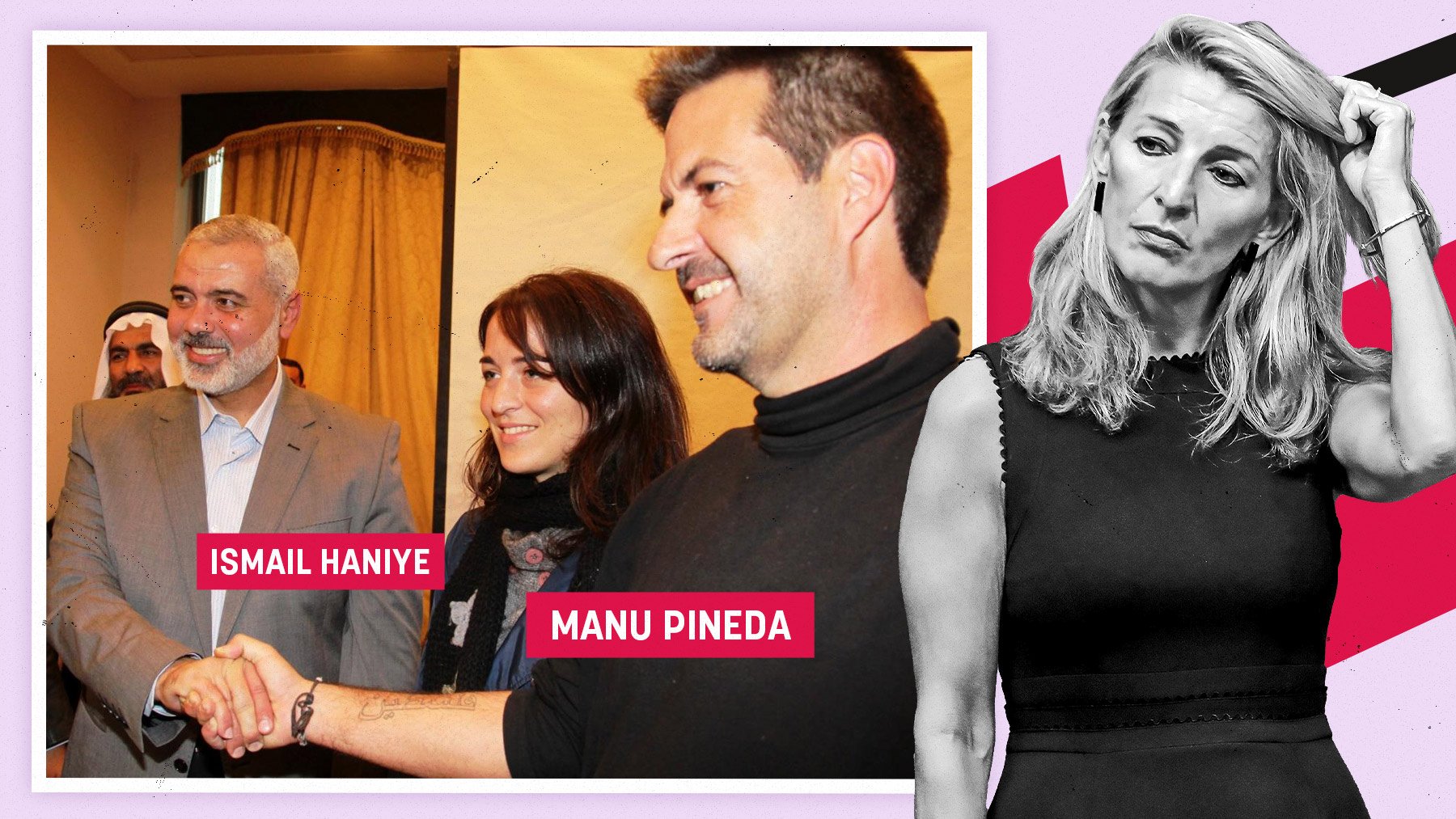 El hombre para los asuntos de Palestina de la vicepresidenta segunda del Gobierno y líder de Sumar, Yolanda Díaz, el actual eurodiputado de Unidas Podemos, Manu Pineda, se fotografió en 2012 estrechando la mano de Ismail Haniye, hoy líder de Hamás, la organización terrorista que ha atacado a Israel cometiendo una masacre sin precedentes.