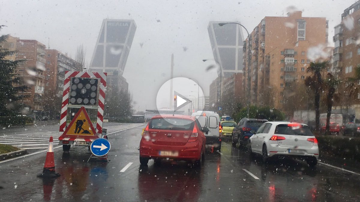 Las vías y accesos a la ciudad de Madrid en la zona norte registran con la llevada de la nieve fuertes retenciones de tráfico este lunes desde primera hora con diversos cortes en túneles, como el caso de Plaza Castilla en dirección centro y en Pío XII sentido Barrio del Pilar.