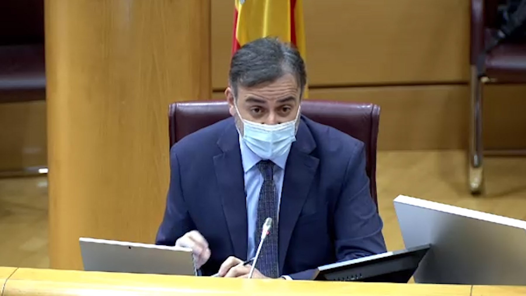 Desde Vox, instantes antes, el senador José Manuel Marín le había reprochado que el Gobierno escatime en los Presupuestos «en Seguridad y Defensa, mientras que despilfarran en recursos para los ilegales, a los que se tienen que enfrentar nuestras Fuerzas y Cuerpo de Seguridad del Estado».