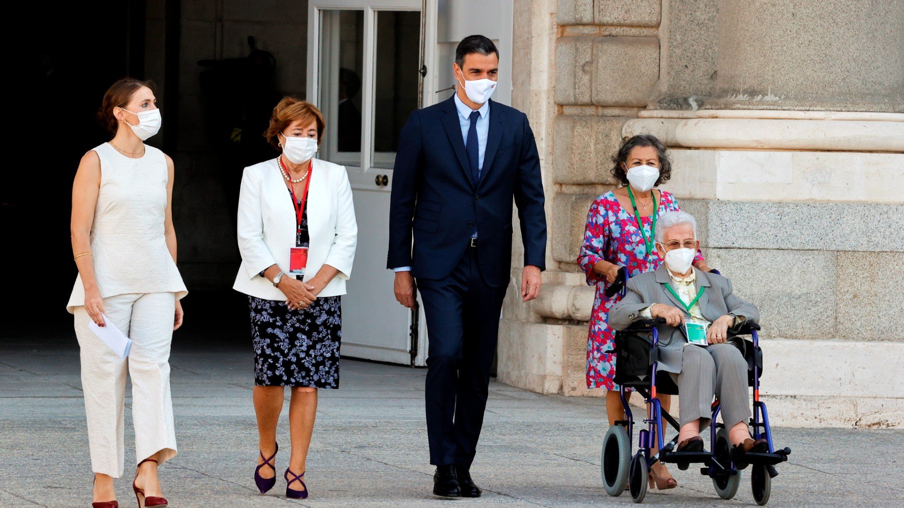 En este homenaje de Estado a las víctimas de coronavirus también han estado presentes los primeros vacunados en distintas comunidades autónomas y cuyas edades oscilan entre los 78 y los 96 años. Su presencia ha tenido como fin fomentar la vacunación entre los jóvenes y dar visibilidad al colectivo. Pedro Sánchez y su Ejecutivo ha querido usar también este colectivo para «simbolizar la fuerza de la vacunación» y la «esperanza de la salida de la pandemia».