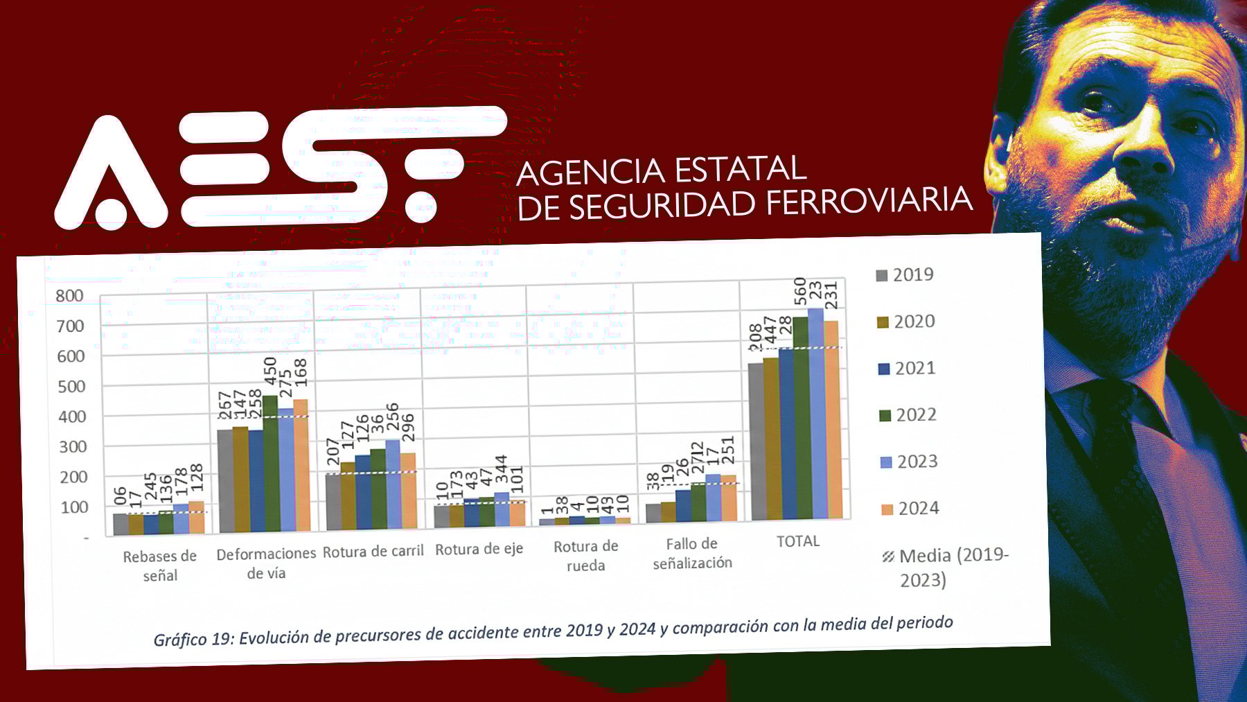 La Agencia de Seguridad Ferroviaria, organismo dependiente del Ministerio de Transportes, lleva años advirtiendo de las cifras ascendentes en los llamados «precursores de accidentes». Se trata de factores como «rebases de señal», «roturas de carril», «deformaciones de vía» o «roturas de eje» que se constituyen como causa de los siniestros. En el caso de la tragedia de Adamuz, por ejemplo, se investiga la rotura de carril. El ministro de Transportes, Óscar Puente, ha admitido que es una «posibilidad innegable» que las muescas detectadas en el tren Iryo que descarriló y en, al menos, otros dos trenes que previamente habían pasado por la vía, tengan relación con el accidente.