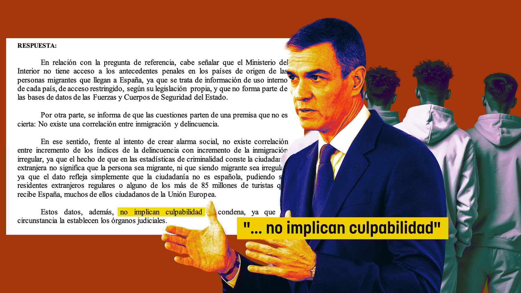 «Por otra parte, se informa de que las cuestiones parten de una premisa que no es cierta: No existe una correlación entre inmigración y delincuencia», rebatió el Ejecutivo.