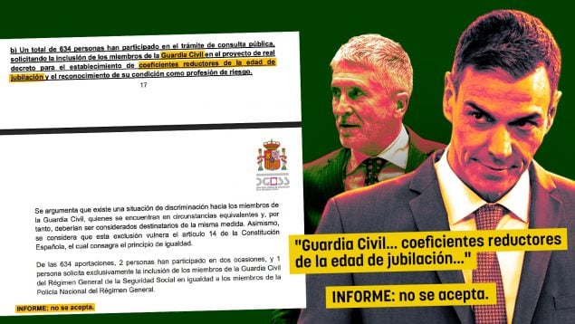 El Gobierno de Pedro Sánchez se ha negado definitivamente a otorgar a la Guardia Civil el derecho a una jubilación anticipada en el mismo procedimiento que a la Policía Nacional. El Ejecutivo socialista ha justificado que el Instituto Armado está «sujeto a un régimen jurídico distinto» por ser «de naturaleza militar». Otros cuerpos autonómicos como los Mossos d’Esquadra o la Ertzaintza ya gozaban de estos beneficios antes que las fuerzas y cuerpos de seguridad del Estado.