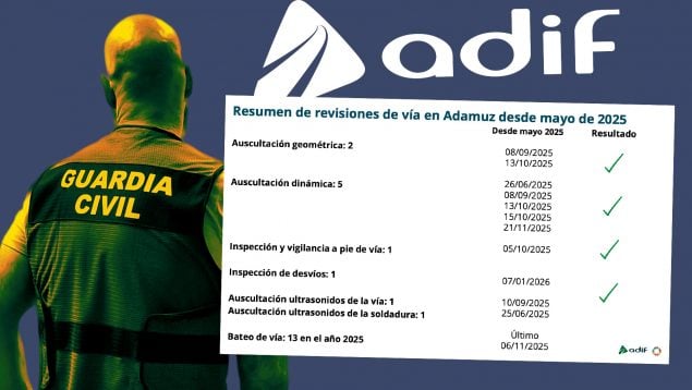 En su informe, la Guardia Civil señala que la auscultación ultrasónica de carril debe realizarse una vez al año y «la campaña ultrasónica actual está prevista para marzo de 2026».