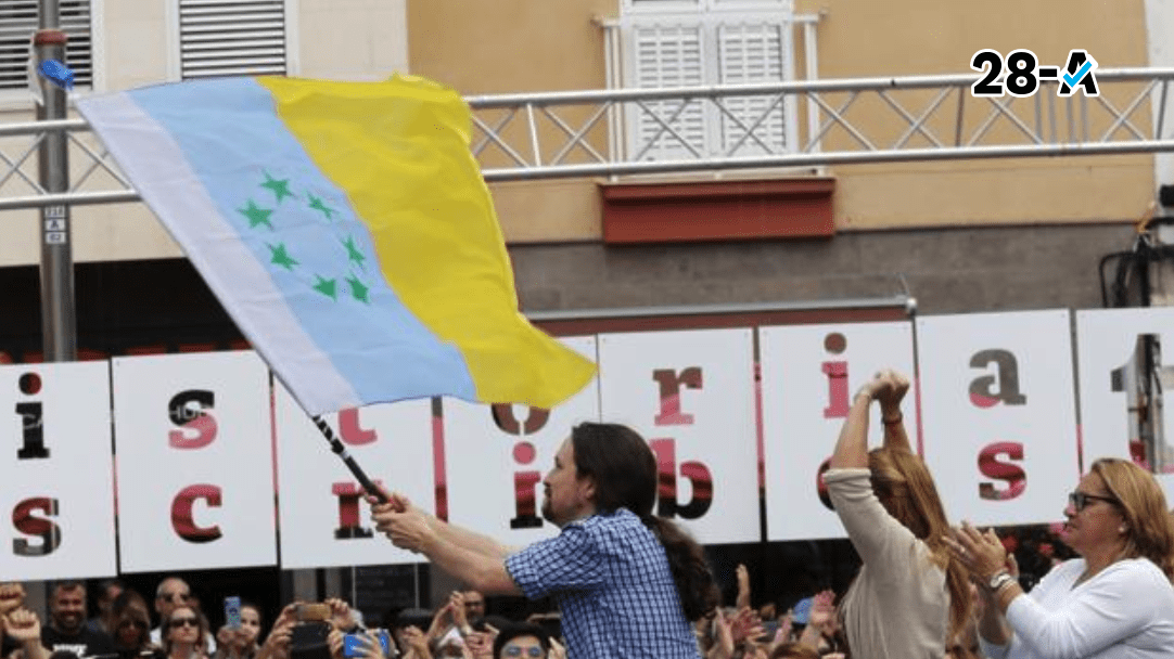 Pablo Iglesias ondea hoy en las islas la bandera independentista canaria.