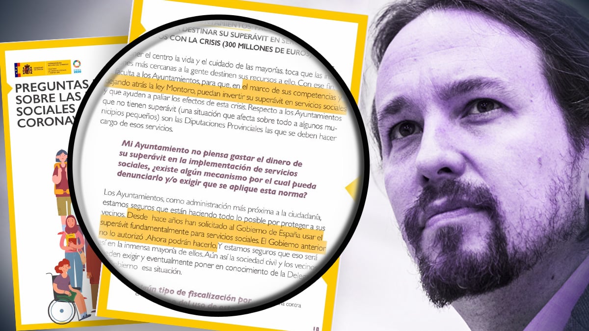 El vicepresidente segundo del Gobierno y ministro de Derechos Sociales y Agenda 2030, Pablo Iglesias, sigue utilizando la crisis del coronavirus, que se salda ya con más de 2.000 muertos y 34.000 contagiados confirmados, para tratar de sacar rédito político. Su última iniciativa ha sido redactar una guía de preguntas frecuentes sobre los efectos de la pandemia en la que aprovecha para arremeter contra el anterior Ejecutivo de Mariano Rajoy. Un dossier elaborado por su Ministerio, por tanto, con recursos públicos, y difundido a través de las redes sociales.