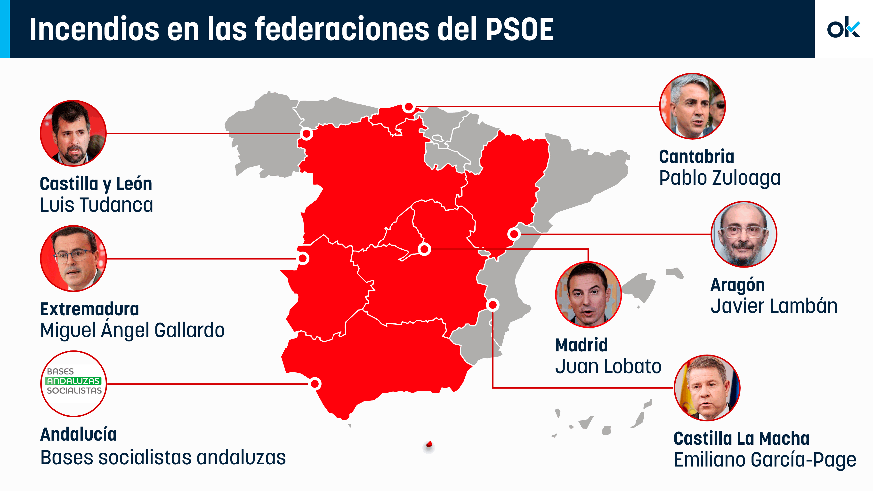 Los incendios en federaciones socialistas de toda España asedian a Sánchez a 48 días del Congreso Federal
