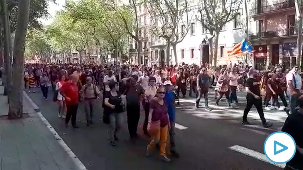 Alrededor de un millar de manifestantes independentistas han cortado este domingo la Gran Vía de Barcelona.