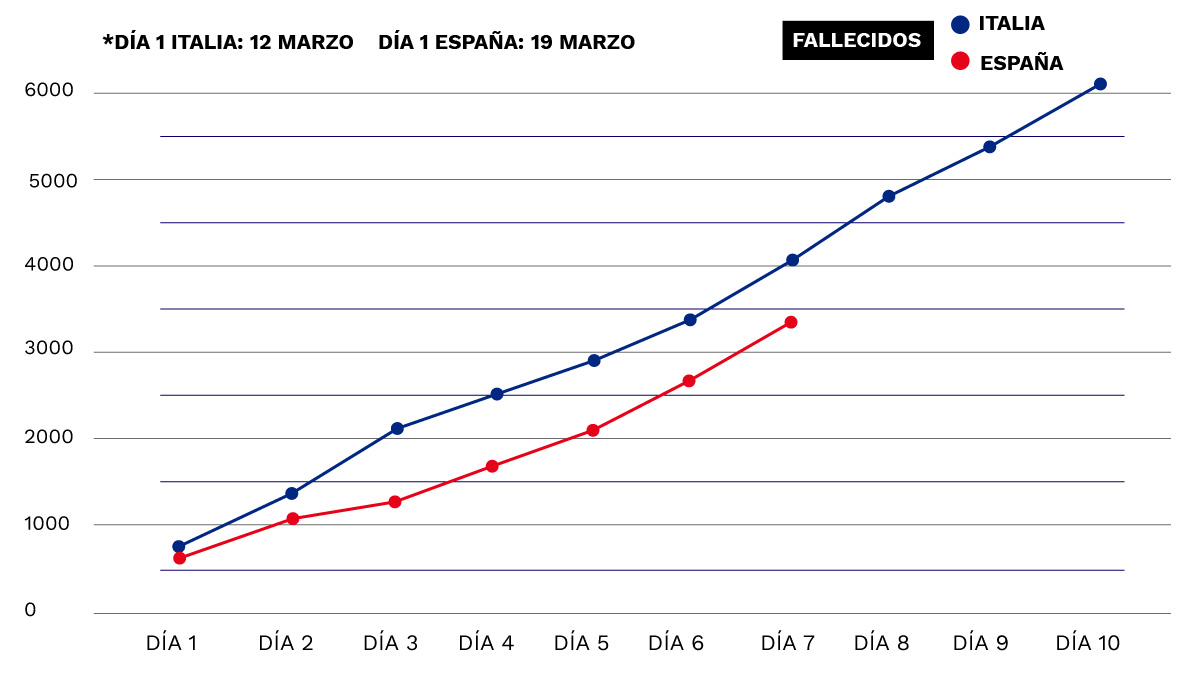Italia marca el camino: la tendencia avanza que España alcanzará los 6.000 muertos el fin de semana