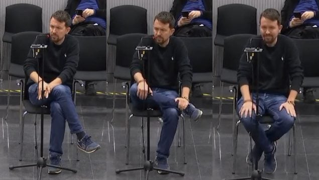 El ex líder de Podemos y ex vicepresidente segundo del Gobierno ha acatado la indicación, ha descruzado las piernas, pero acto seguido, segundos después, las ha vuelto a cruzar, sin que el tribunal haya vuelto a intervenir.