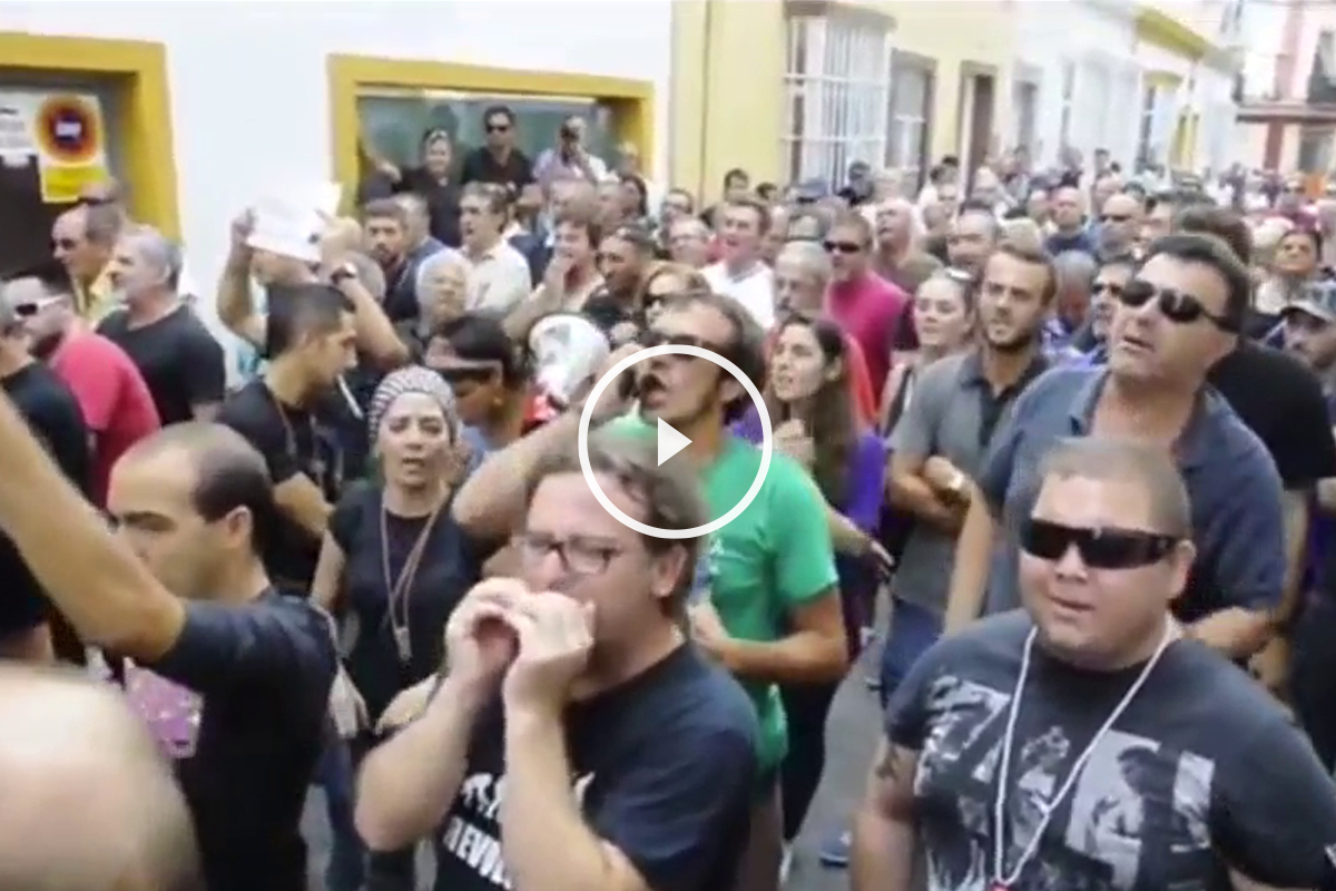 Micrófono en mano, ‘Kichi’ y los suyos corean: «Si esto no se apaña, caña, caña, caña. Y la próxima visita, será con dinamita». Momentos después, uno de ellos asegura que respetan a los agentes al otro lado del cordón, para más tarde añadir que si alguno se infiltraba, lo «hinchaban a palos», comentario que hizo aplaudir al dos años más tarde máximo responsable de la ciudad.