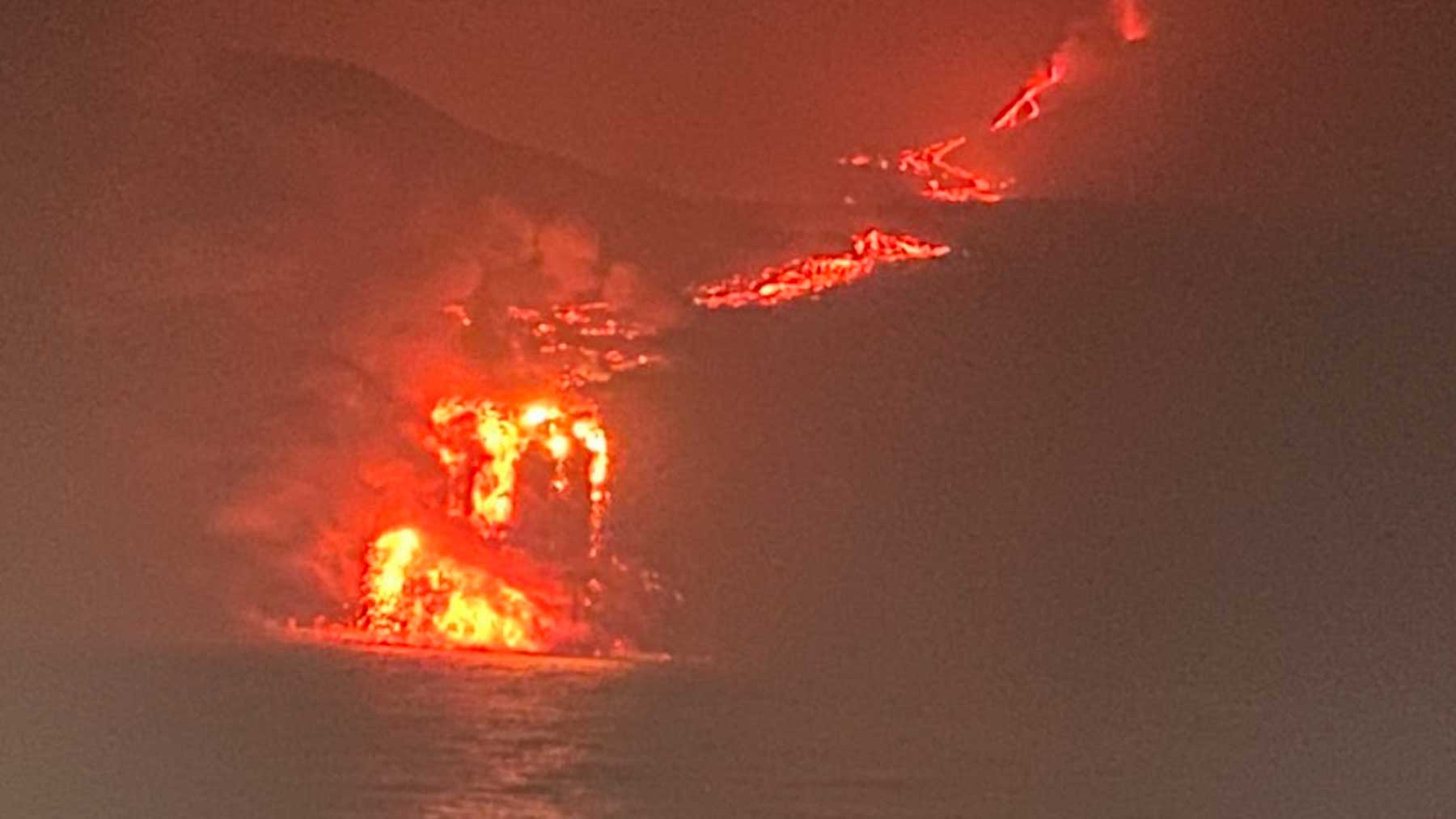 La Capitanía Marítima de la #DGMM confirma que sobre las 00.00 horas peninsulares la lava de la #ErupciónLaPalma ha tocado el mar.