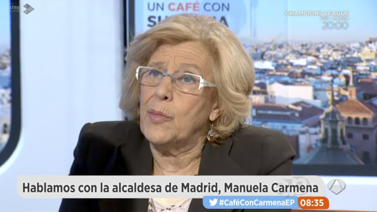 A Manuela Carmena no le ha sentado nada bien que Pablo Iglesias se crea con la autoridad de decidir quién va a sucederla cuando termine su mandato, que, como ha repetido este martes en ‘Espejo Público’, durará «cuatro años, ni un día menos ni un día más».