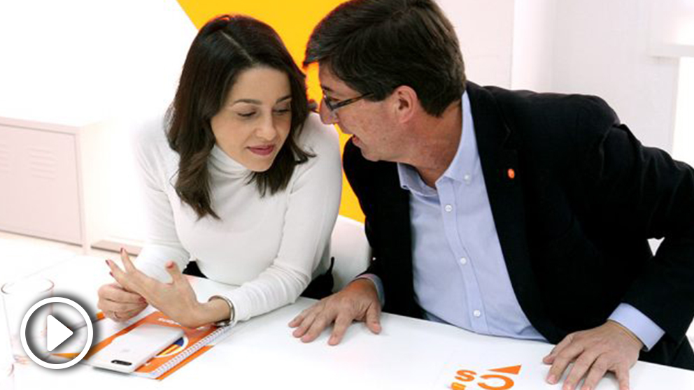 Inés Arrimadas y Juan Marín han destacado el crecimiento de Ciudadanos (Cs)en las elecciones de este domingo, a la vez que ha descartado formar gobierno con el gran vencedor de la noche, el líder socialista Pedro Sánchez.