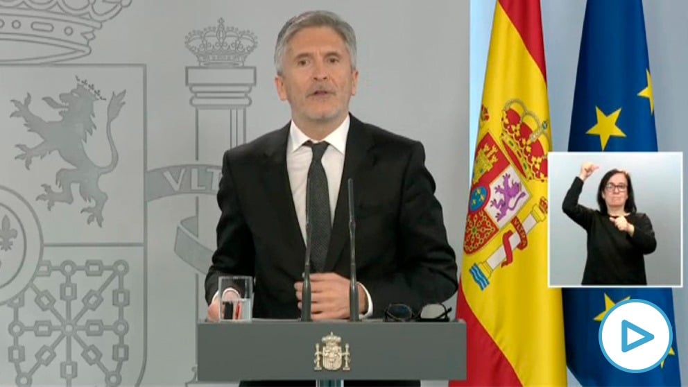 El ministro del Interior ha comparecido este lunes en Moncloa ante los medios junto a Salvador Illa, ministro de Sanidad, para valorar los últimos datos de la pandemia. Marlaska ha sido preguntado sobre el vídeo del pasado domingo que publicó OKDIARIO en el que Iglesias no cumplía las recomendaciones de llevar mascarilla y guantes de látex mientras realizaba la compra.