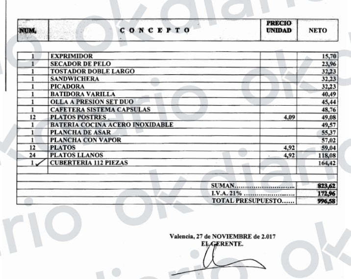 Además, denuncia que a costa del contribuyente, a los generales se les compra todo con dinero público. «Hasta el secador, el exprimidor, la sandwichera y el colchón, entre otras cosas», según consta en una factura a la que ha tenido acceso a través del portal de transparencia.
