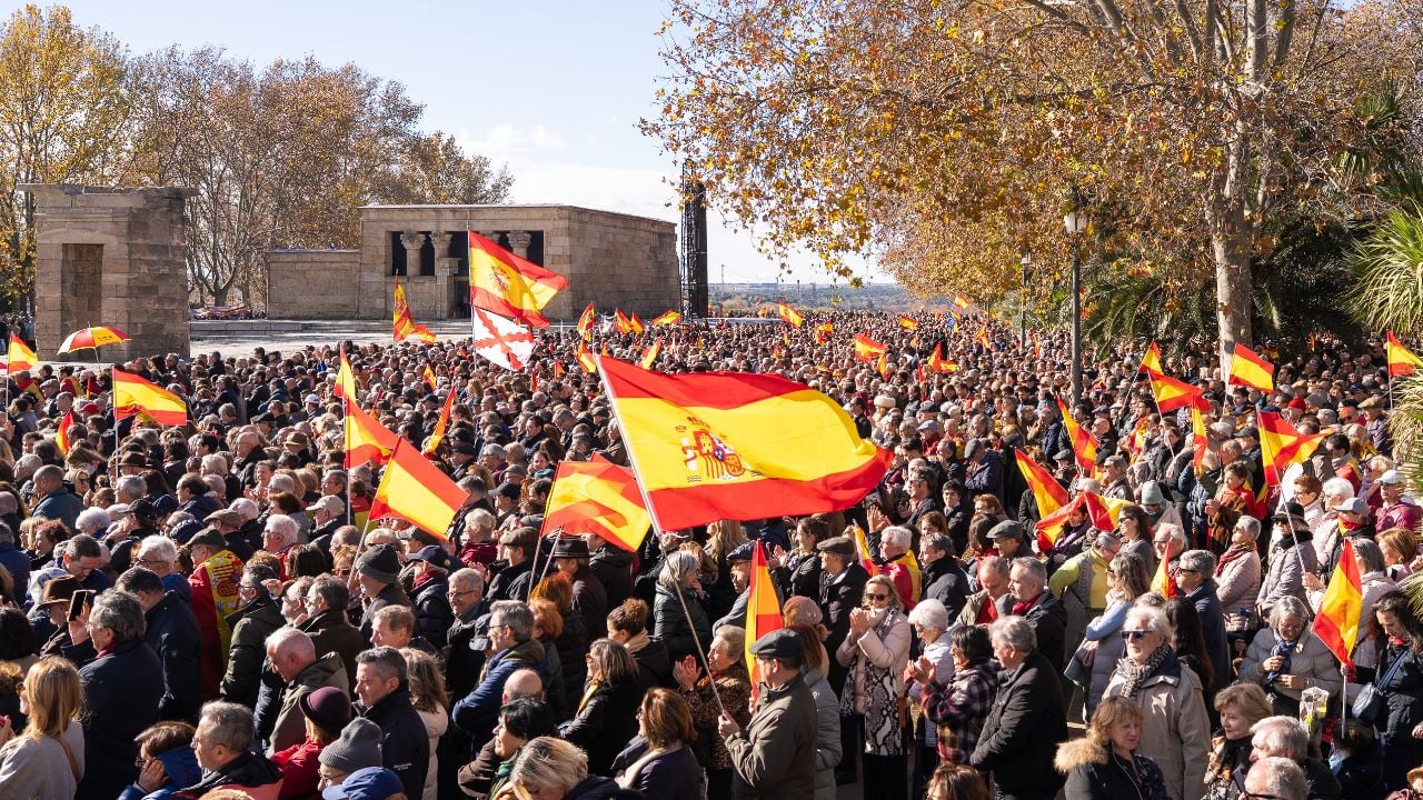Alrededor de 80.000 personas, según el Partido Popular, se han congregado en la mañana de este domingo en la plaza del Templo de Debod de Madrid tras el ingreso en prisión del que fuera número dos de Sánchez, José Luis Ábalos. «El sanchismo es corrupción, está en la cárcel y tiene que salir del Gobierno», ha exigido el presidente del PP, Alberto Núñez Feijóo que ha estado acompañado por los ex presidentes Rajoy y Aznar, así como la mayoría de los barones del partido.