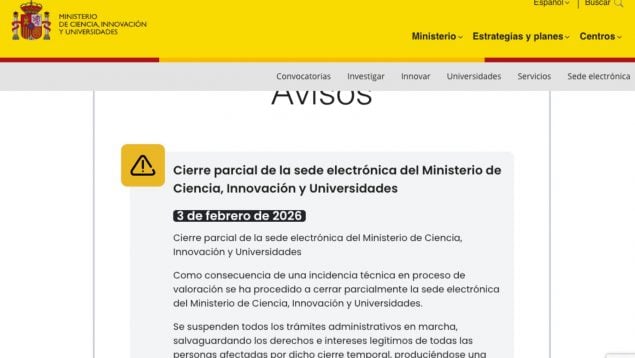Desde el ministerio advierten que se suspenden todos los trámites administrativos en marcha, «salvaguardando los derechos e intereses legítimos de todas las personas afectadas por dicho cierre temporal, produciéndose una ampliación de todos los plazos de los distintos procedimientos afectados, hasta que se produzca la completa resolución de la referida incidencia, de lo cual se dará debida noticia a través de la sede electrónica y la página web del Ministerio de Ciencia, Innovación y Universidades».