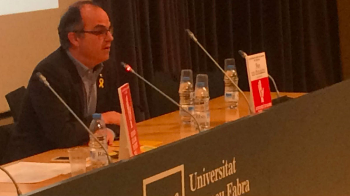 El ex conseller Jordi Turull, en libertad condicional, ha participado este miércoles en el acto de la asociación impulsada por familiares de golpistas para denunciar la «represión» del Estado, en el auditorio de la Universidad Pompeu Fabra, de titularidad pública.