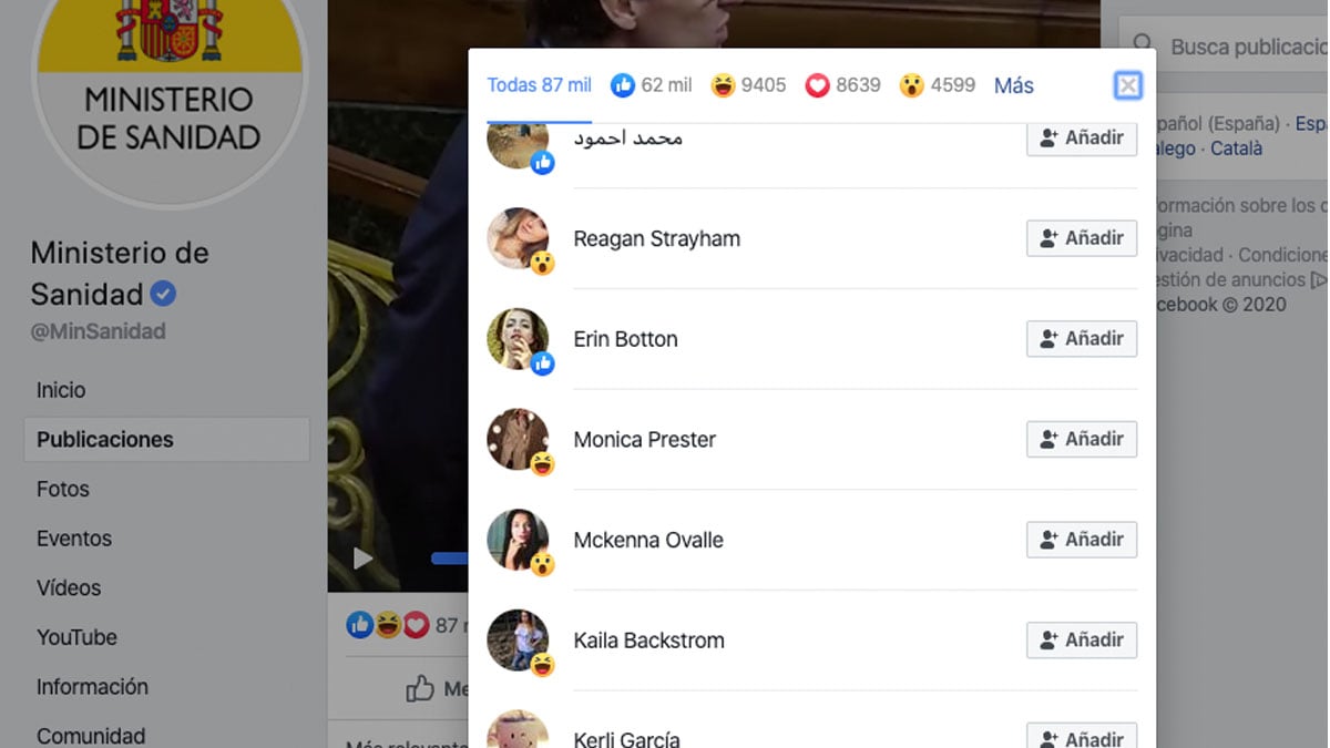 Repasar los nombres que figuran entre los nada menos que 87.000 usuarios que han reaccionado con interacciones de todo tipo -pero siempre con clicks en las caritas positivas- ofrece una colección de nombres más propios de otras latitudes que de la geografía española, que es lo que uno podría entender como lógico dado que el ministro nacional se dirige en sus intervenciones, evidentemente, a los españoles.