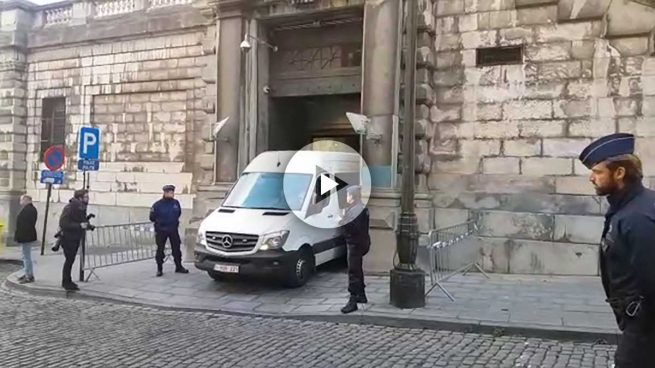 En un furgoneta blanca, escoltada por un coche de la policía secreta belga, el ex presidente de la Generalitat y sus cuatro ex consejeros han abandonado rápidamente el Palacio de Justicia por la puerta de atrás. Sin embargo, pese al intento de despistar a los medios, OKDIARIO les ha cazado.