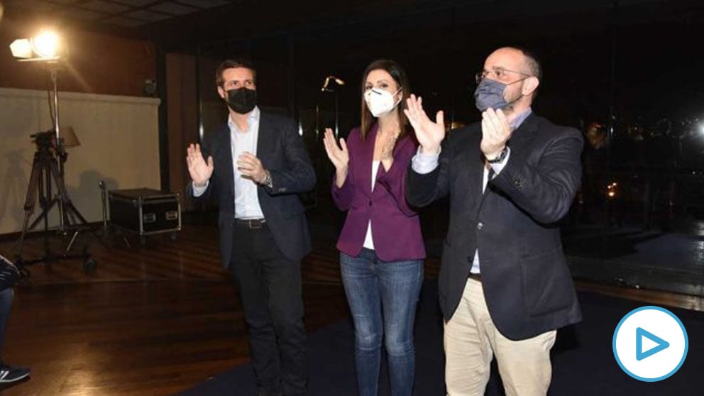 El candidato del PP a la Generalitat Alejandro Fernández y su número 2 Laura Roldán han sido arropados por Pablo Casado en el último día de campaña de las elecciones del 14-F. En dicho acto, los representantes del PP han querido marcar distancias con Vox, partido al que todas las encuestas sitúan ya en el Parlament de Cataluña –hasta ahora no tenía representación– e incluso muy cerca del sorpasso a los ‘populares’.