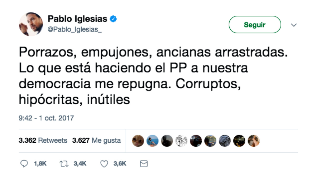 — Pablo Iglesias (@Pablo_Iglesias_) October 1, 2017